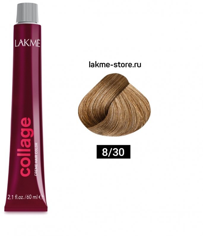 LAKMÉ, COLLAGE, Перманентная крем-краска для волос №8/60, Блондин коричневый, 60 мл