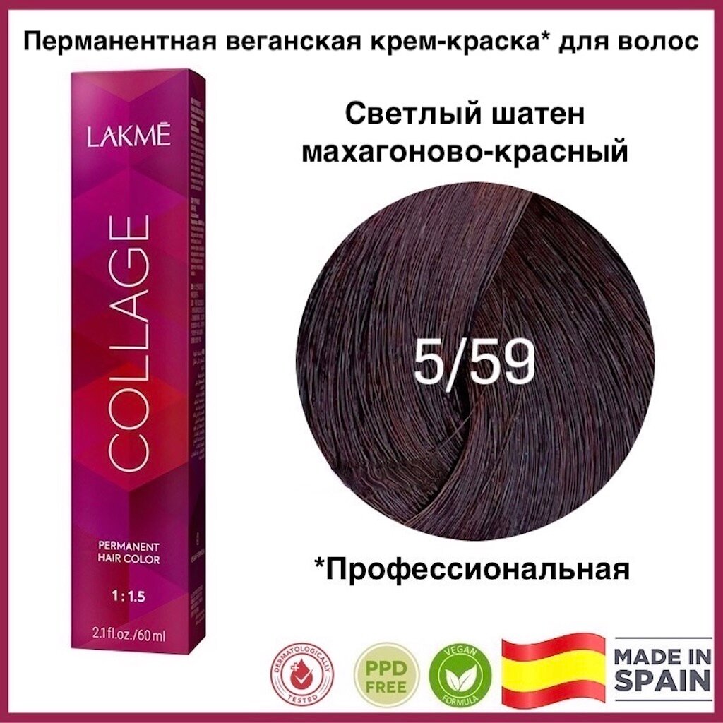 Крем-краска Lakme Collage 5/59, светлый шатен махагоново-красный 25591