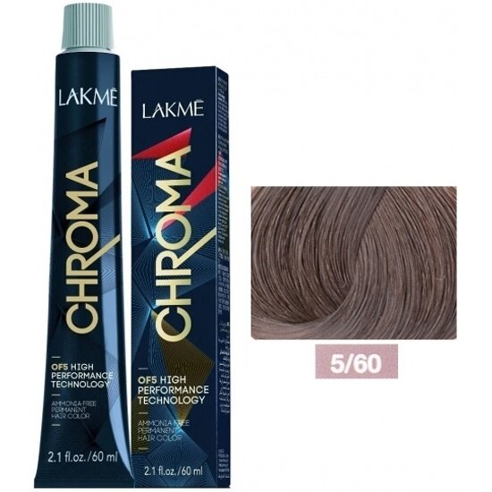 LAKMÉ, CHROMA DEVELOPER, Перманентная безаммиачная крем-краска №5/60, Светлый шатен коричневый, 60 мл