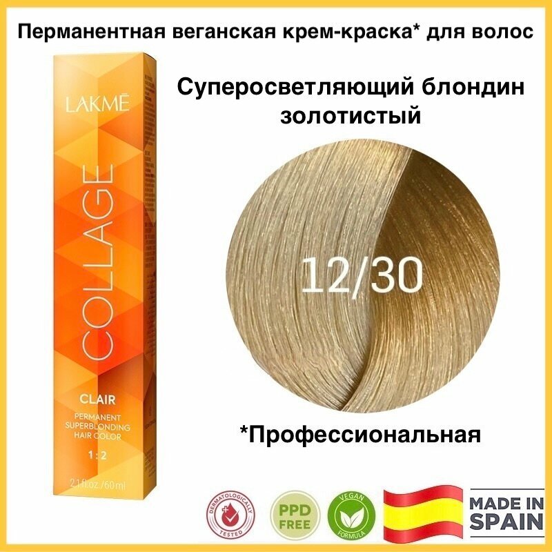 LAKMÉ, COLLAGE, Перманентная крем-краска для волос №12/00, Суперосветляющий натуральный, 60мл