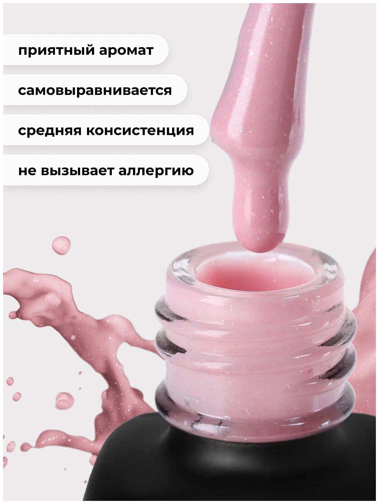 Гель-лак для ногтей Serebro с блестками, плотный, гипоаллергенный, светлый розовый, 11 мл