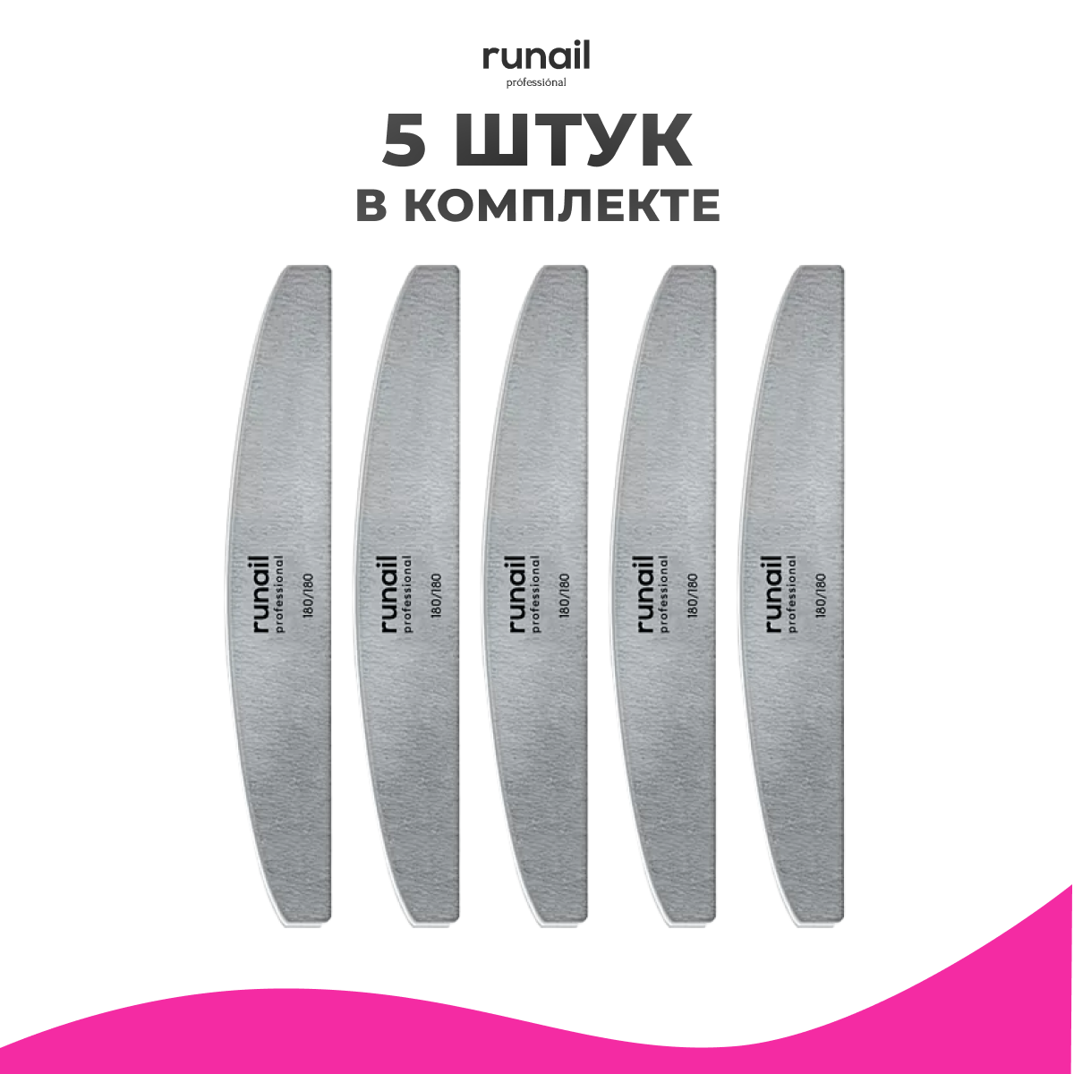 Купить RuNail, набор пилок для ногтей полукруглые (серые, 180/180), 5 шт