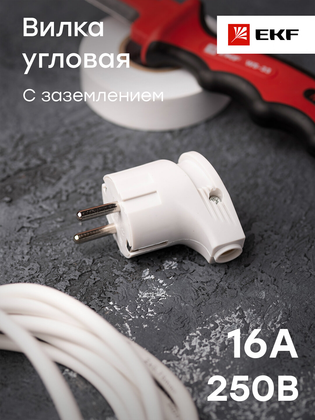 Переносная кабельная вилка EKF с заземлением, белая, 16 А, 250 В