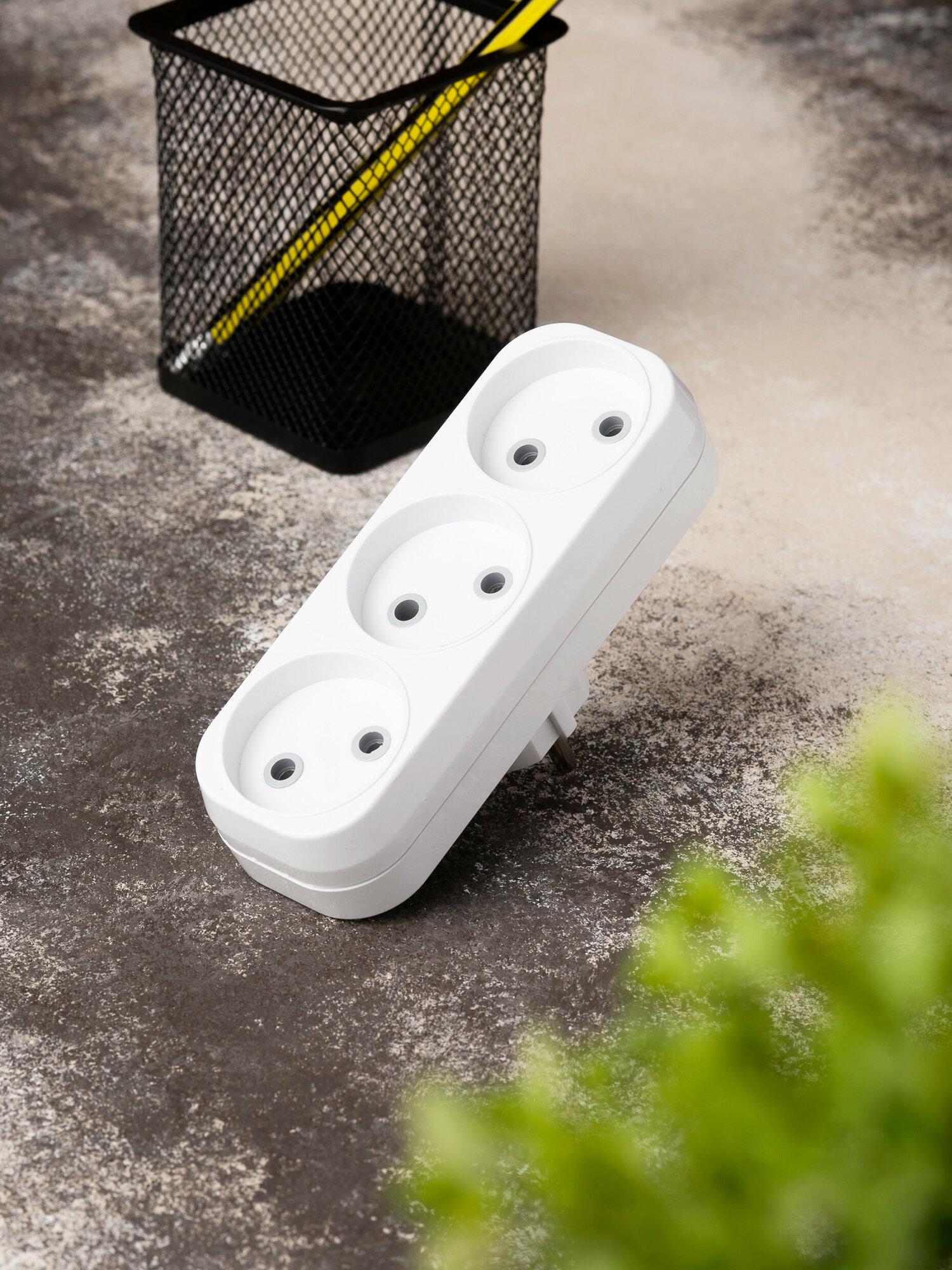 Тройник для розетки электрический с заземлением 16А, белый