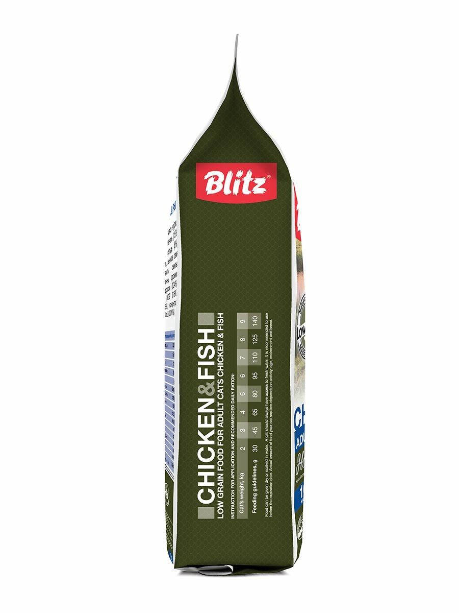 BLITZ HOLISTIC CHICKEN & FISH низкозерновой корм для взрослых кошек всех пород, Курица/Рыба 5кг.