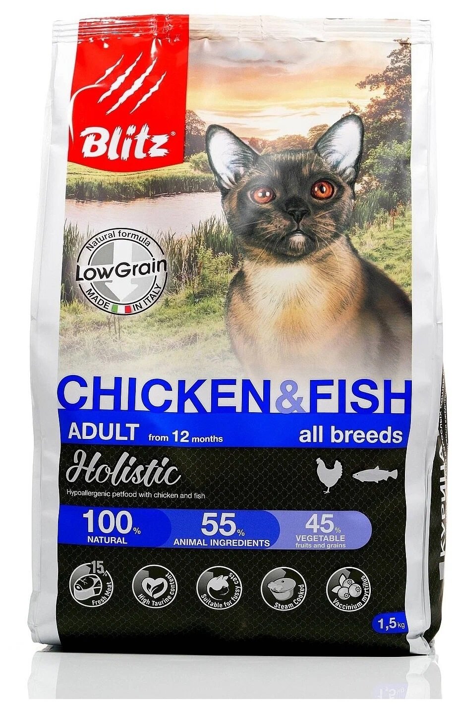 BLITZ HOLISTIC LOW-GRAIN ADULT CAT CHICKEN & FISH низкозерновой для взрослых кошек всех пород с курицей и рыбой (1,5 кг)