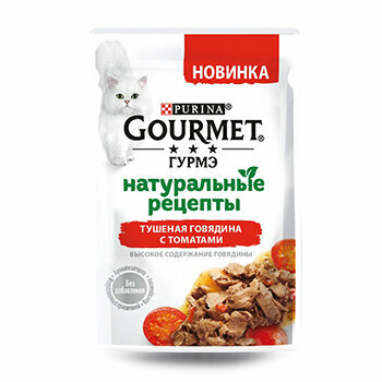 Купить Гурмэ Натуральные рецепты влажный корм для кошек, тушеная говядина с томатами 75гр