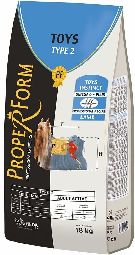 Корм сухой PROPER FORM Toys Type2 для взрослых собак мелких пород с ягненком, 18кг
