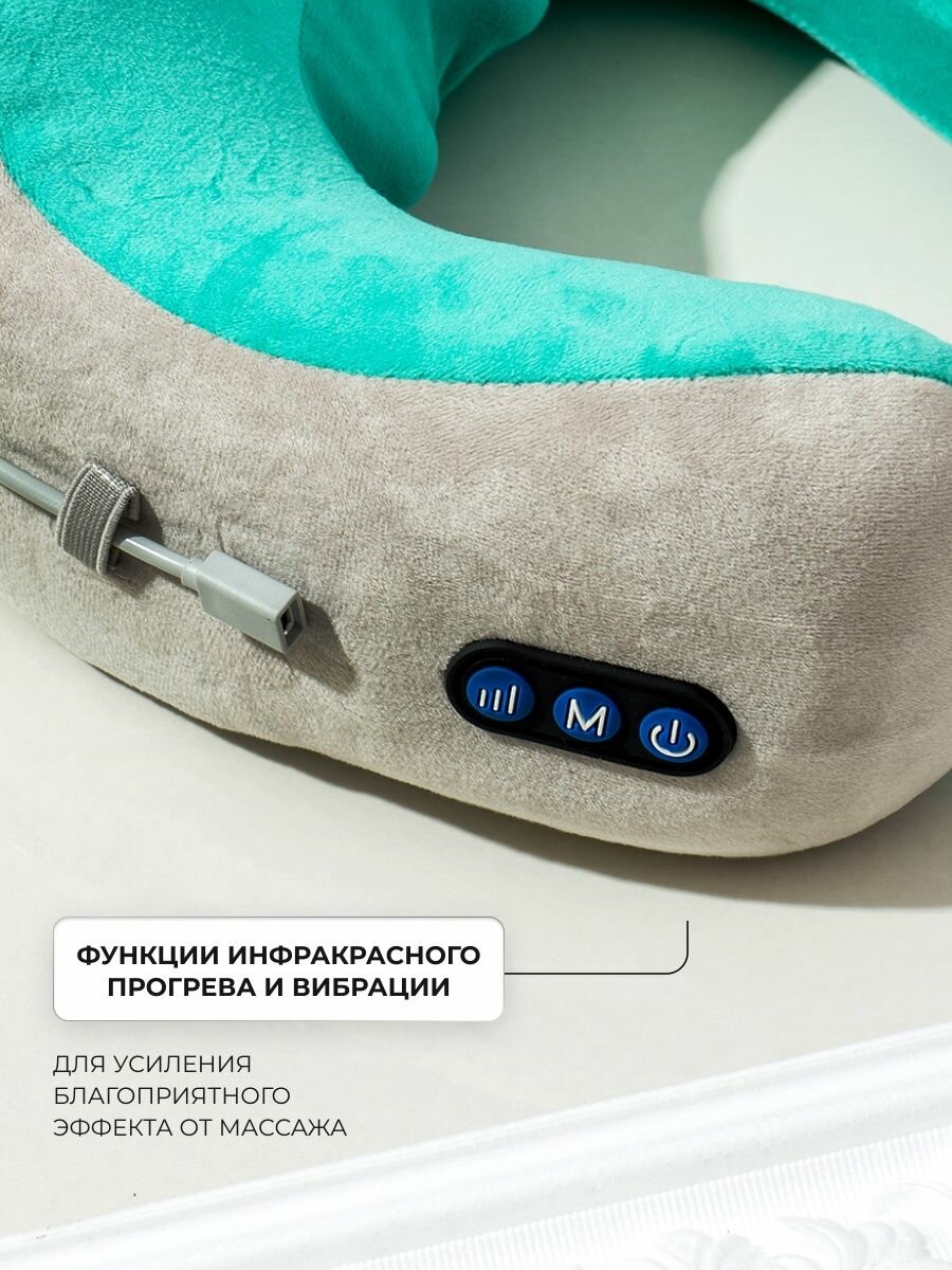 Массажная подушка-подголовник BRADEX KZ 0558 25,5х25х12,5 см, серо-зелёная
