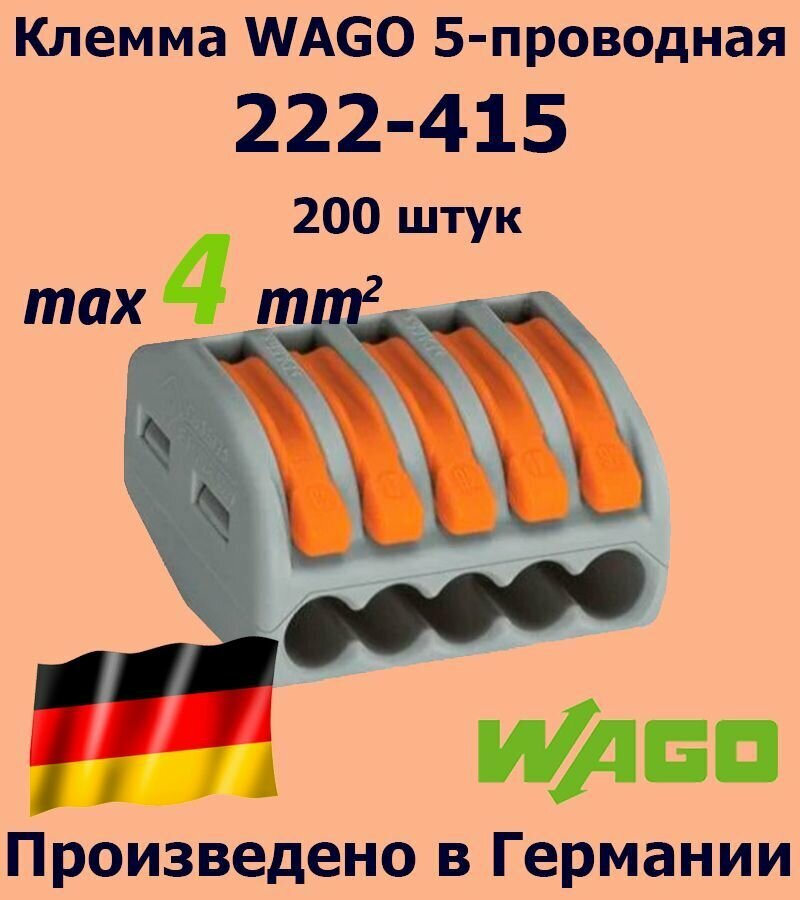 Купить Клемма WAGO с рычагами 5-проводная 222-415, 200 шт.