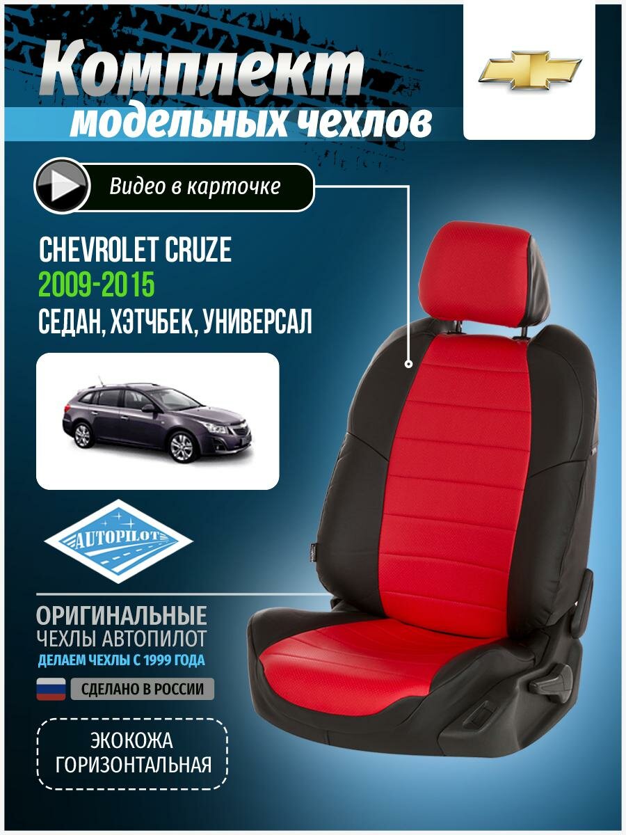 Модельные авточехлы АВТОПИЛОТ для Chevrolet Cruze (2009-2015гг) экокожа, черно-красные