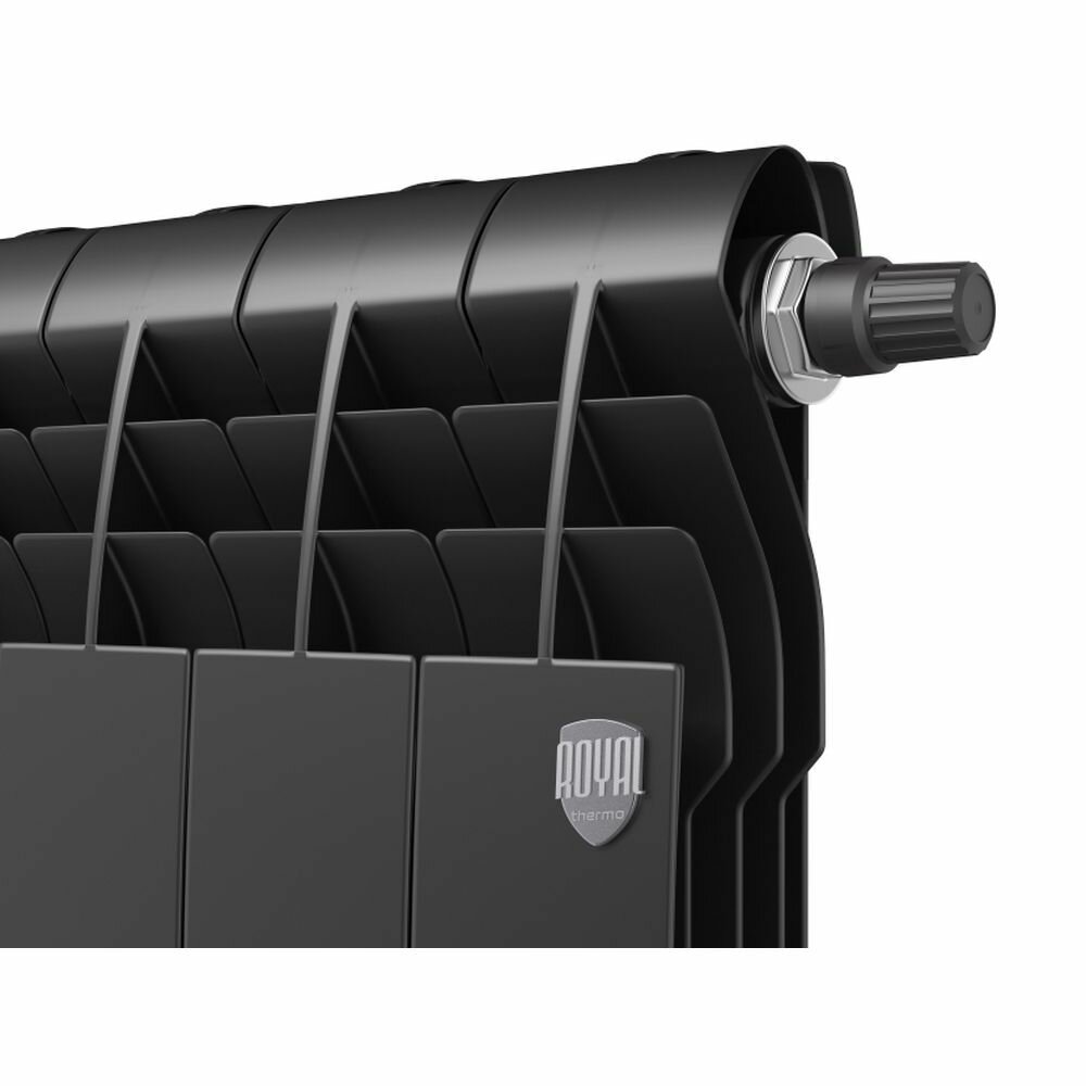 БиМеталлический радиатор Royal Thermo Biliner Noir Sable 500 V \ 08 секций \ с нижним правым подключением, термовентиль тип Click