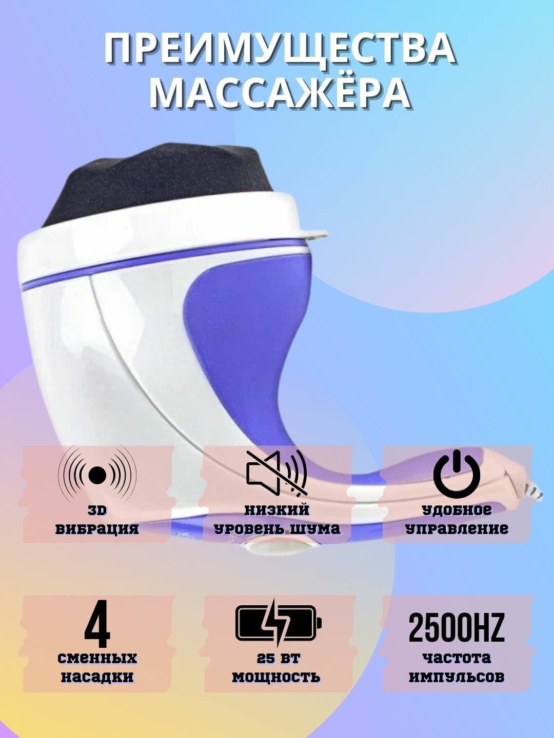 | Плюсы: | Отличный массажер!Пришла посылка полностью упакованная,все насадки в наличии.По ощущениям напоминает турбомассаж.Рекомендую!!! |