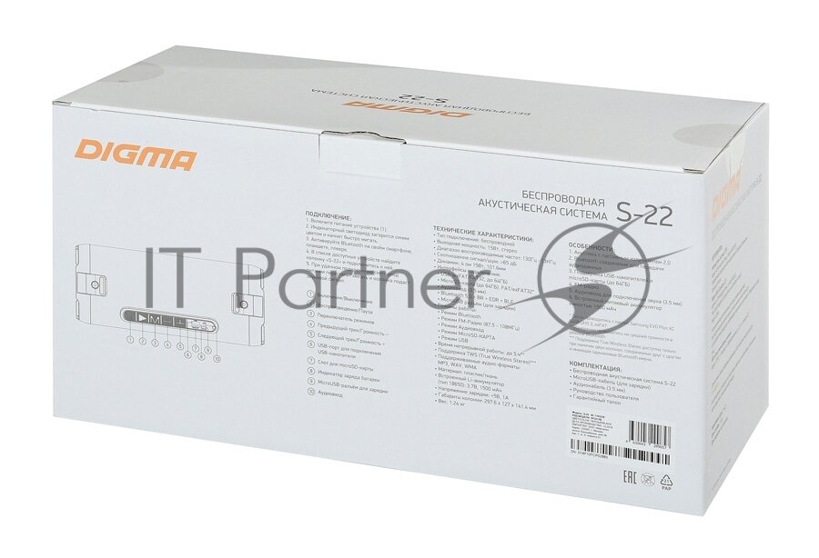 Портативная акустика DIGMA S-22