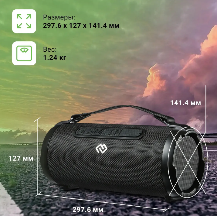 | Плюсы: | Громкий и чистый звук, наличие фм радио, малый вес, поддержка микро сд карт, 5 часов работы, стерео динамик, удобно переносить благодаря шлейки. |