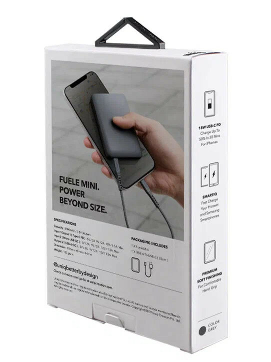 Купить Uniq АКБ внешняя Fuele Mini 8000 Li-Pol USB-C PD18W +USB QC3.0 Grey