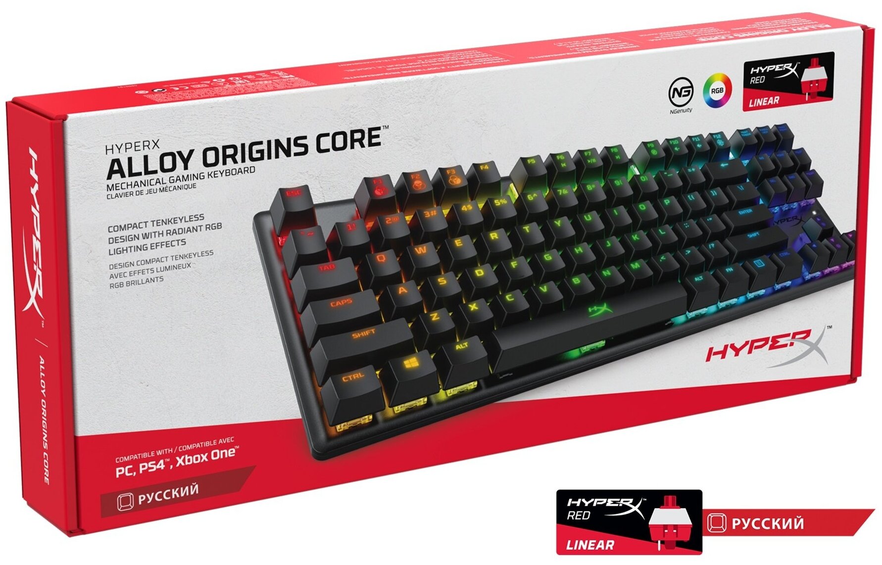 Игровая клавиатура HyperX Alloy Origins Core HyperX Red, черный, кириллица+QWERTY