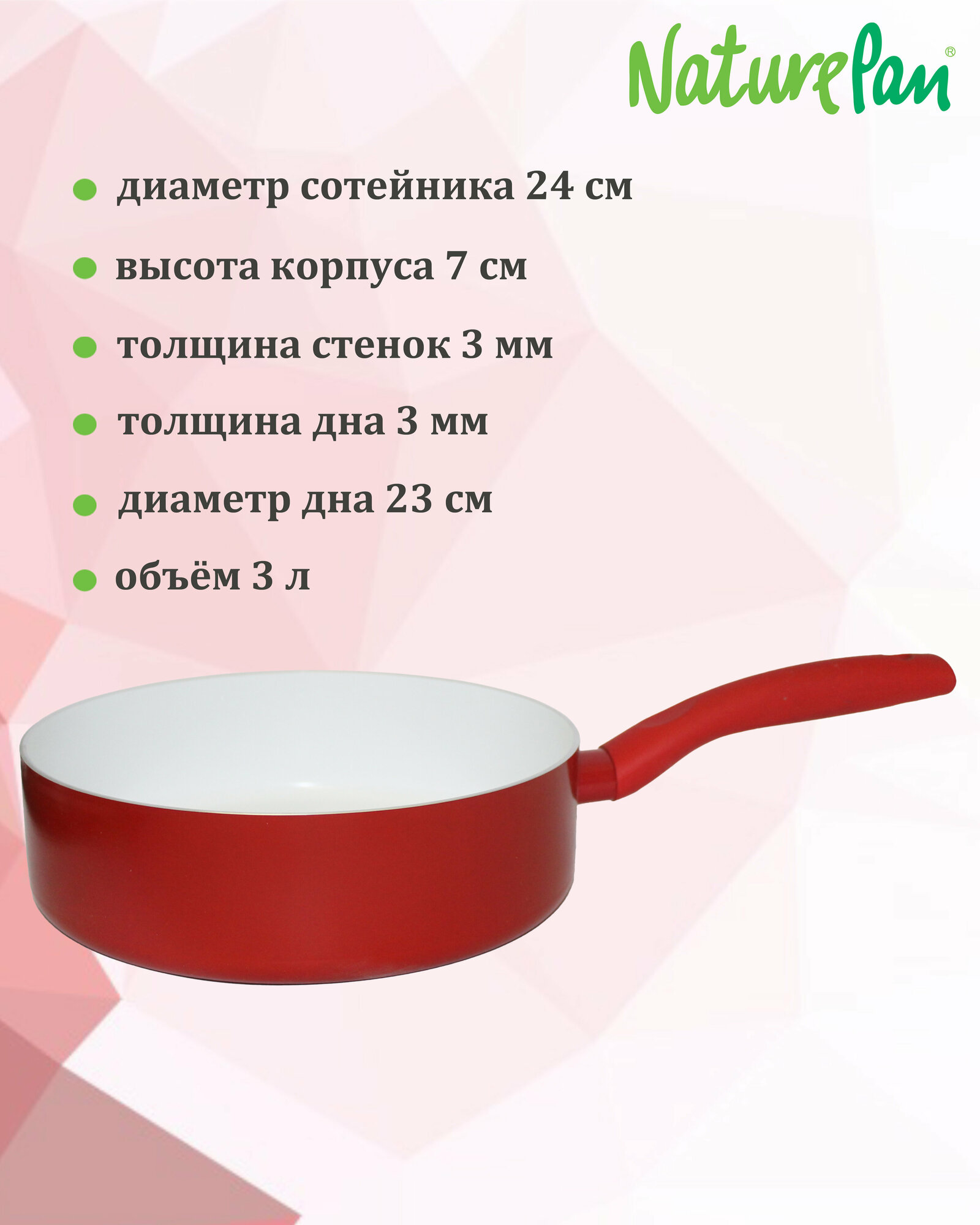 Сковорода с антипригарным покрытием, NaturePan Basic d24см h5см