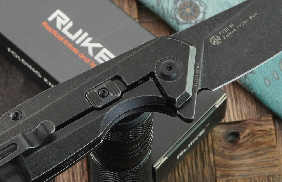 Складной нож Ruike, сталь 14C28N, рукоять сталь интересное:
