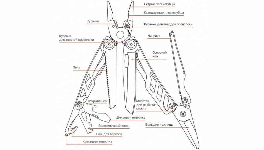 | Плюсы: | Хороший мультитул, качественная сборка, хорошо режет |