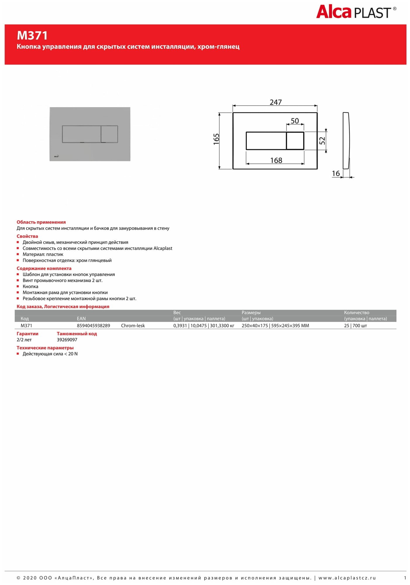 Кнопка управления Alca Plast M371 хром - глянцевая 00022157 .