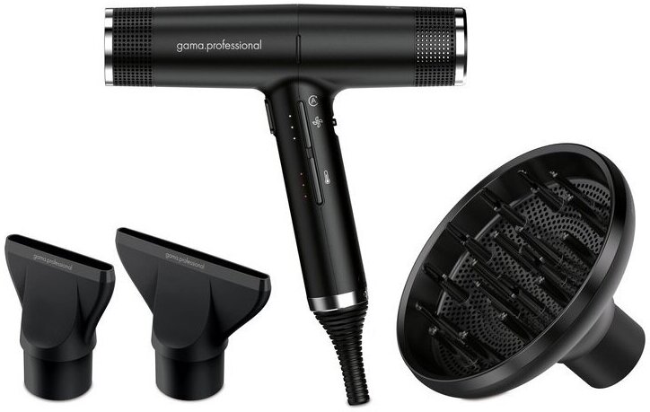 Фен для волос GA.MA IQ Perfetto мощность 1600 Вт, с ионизацией. С насадками диффузор и концентраторами. Черный