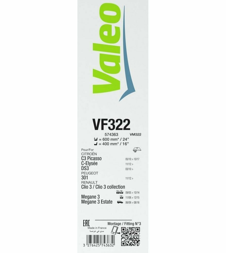 Комплект стеклоочистителей Valeo Silencio Flat VF322 Valeo 574363