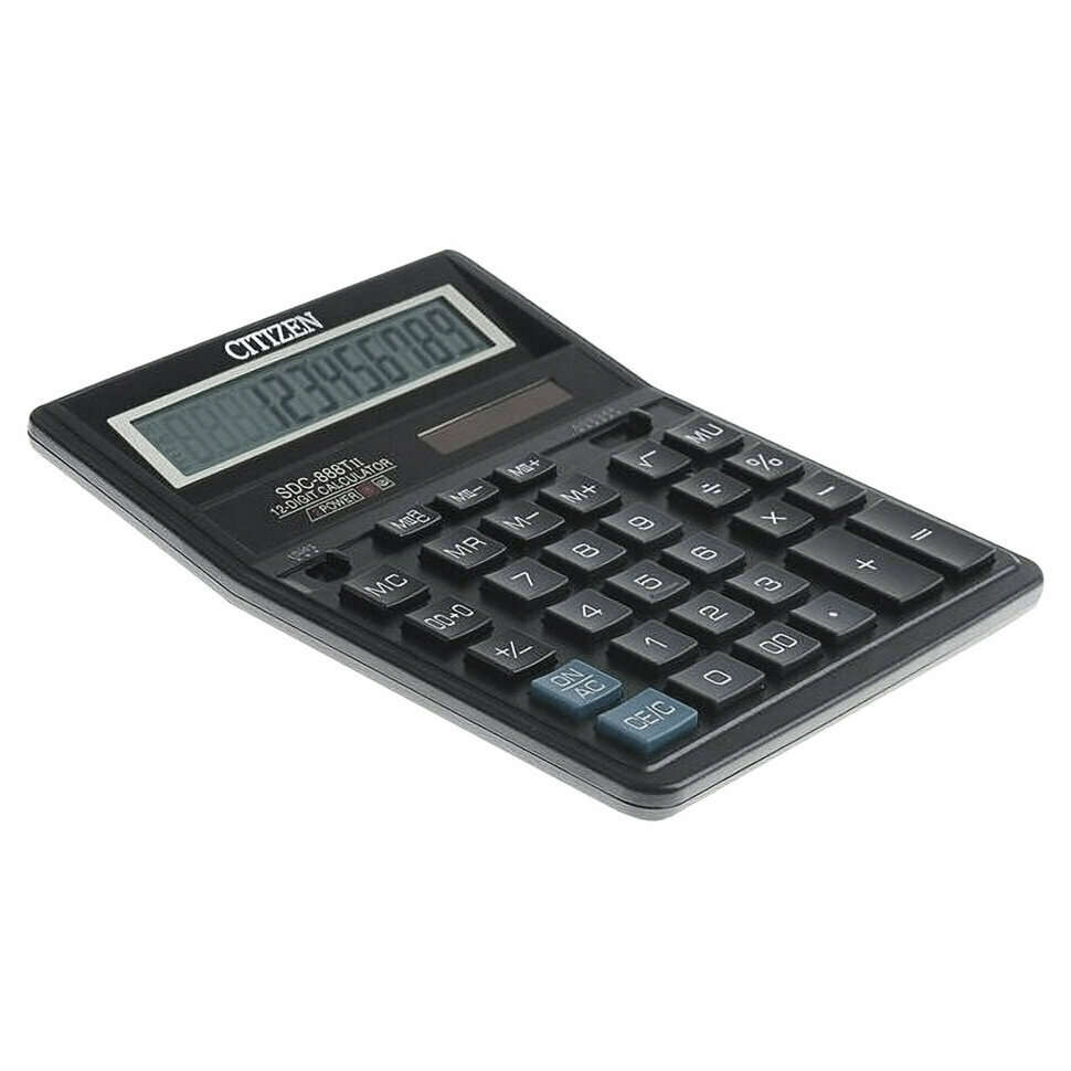 Калькулятор настольный Citizen SDC-888TII, 12 разрядов, двойное питание, 158×203×31мм, черный