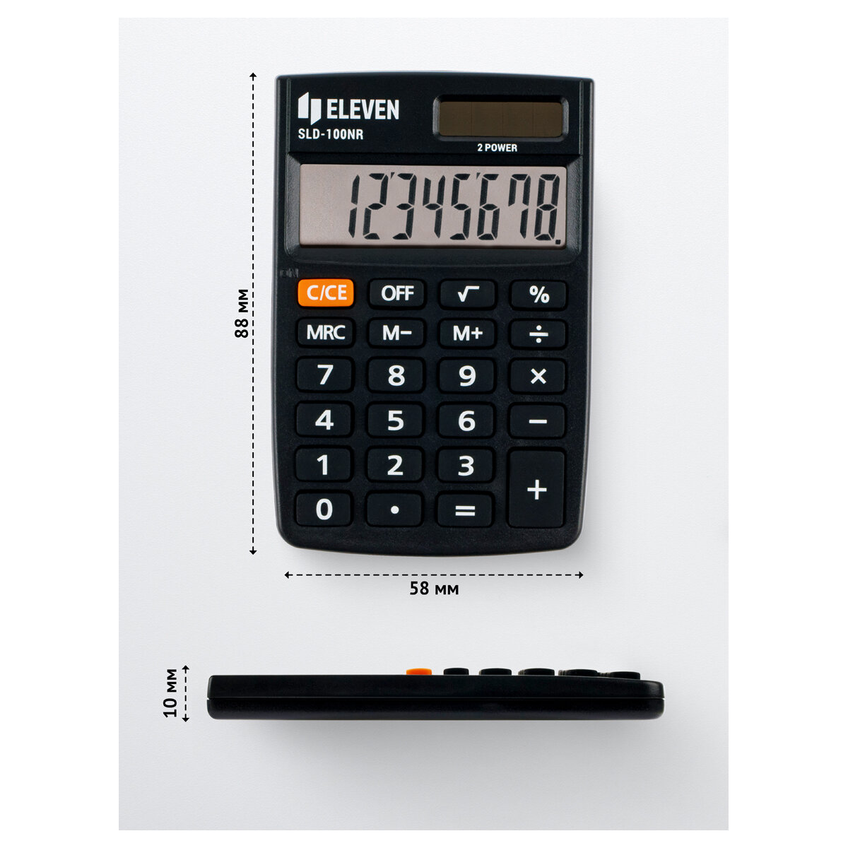 Калькулятор Eleven карманный, 8 разрядов, двойное питание, 58х88х10 мм, черный (SLD-100NR)