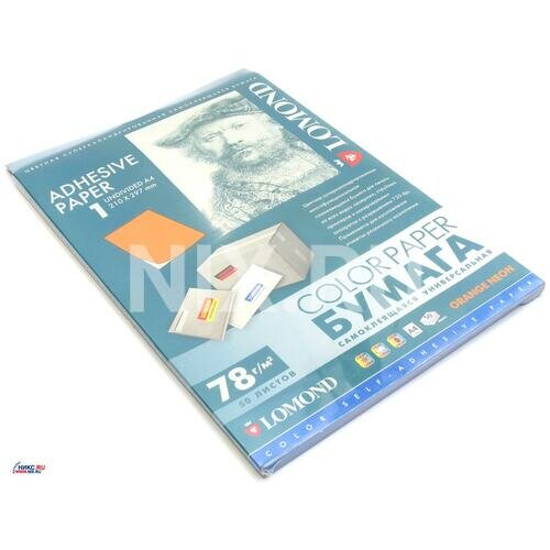 Бумага Lomond 2030005 Самоклеящаяся цветная бумага LOMOND для этикеток, неоновая, оранжевая, A4, (210 x 297 мм), 78 г/м2, 50 листов