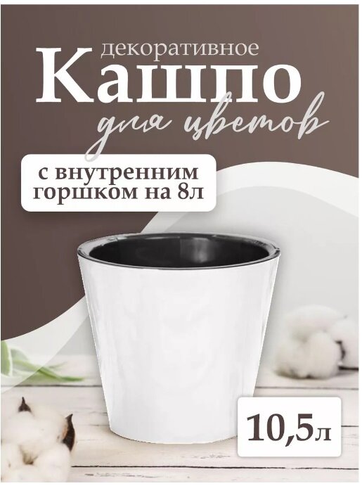 Горшок для растений с дренажной вставкой 10,5 л, белоснежный жасмин