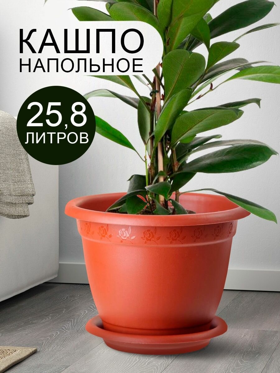 Горшок с поддоном Борнео, 25,8 л, цвет терракотовый