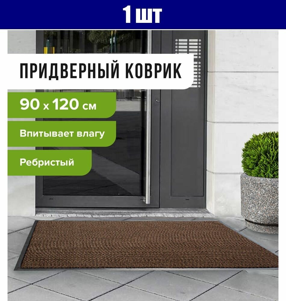 Коврик входной ворсовый влаго-грязезащитный LAIMA, 120х150 см, ребристый, толщина 7 мм, коричневый