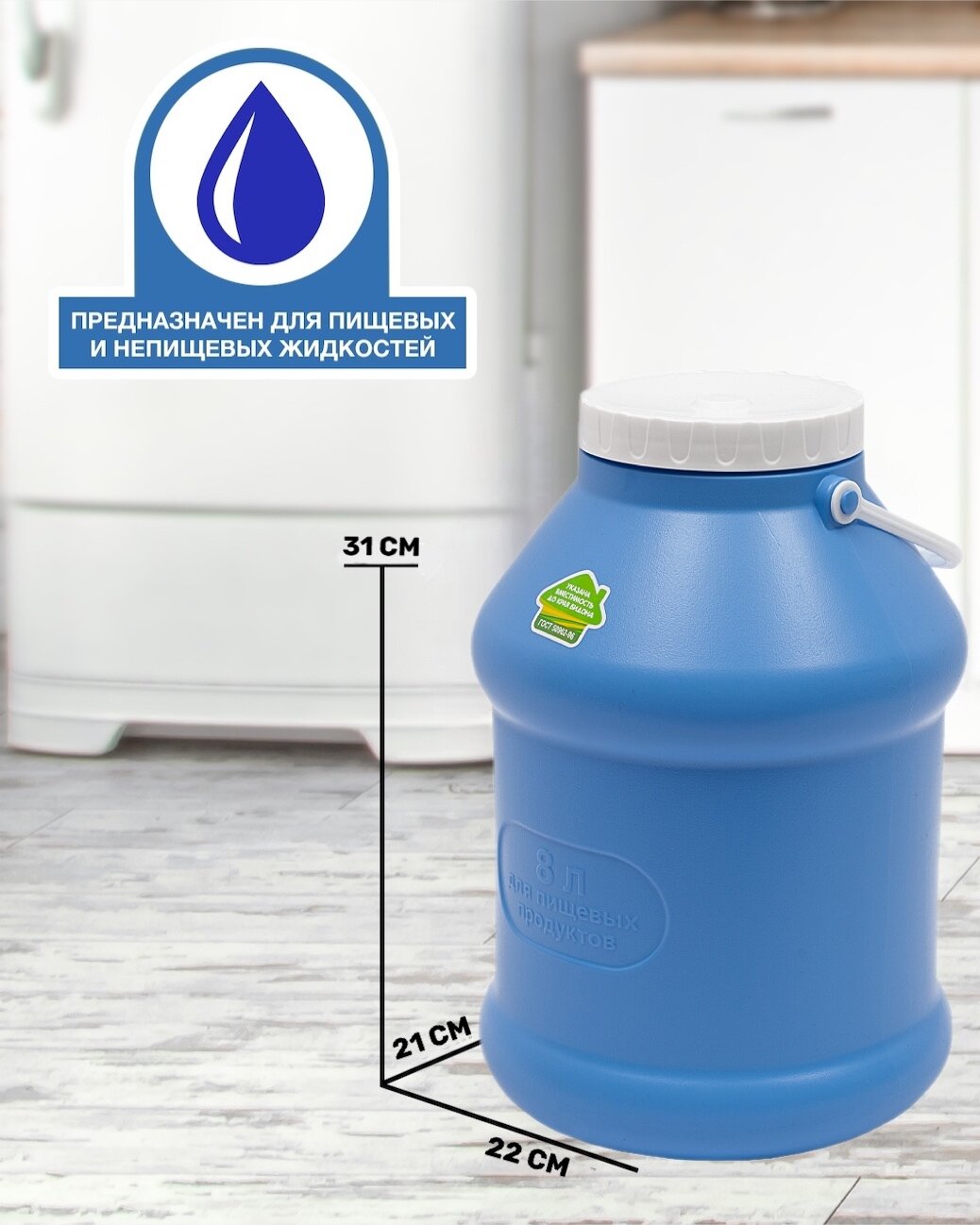 Бидон для воды 8 литров пищевой, пластиковый с крышкой