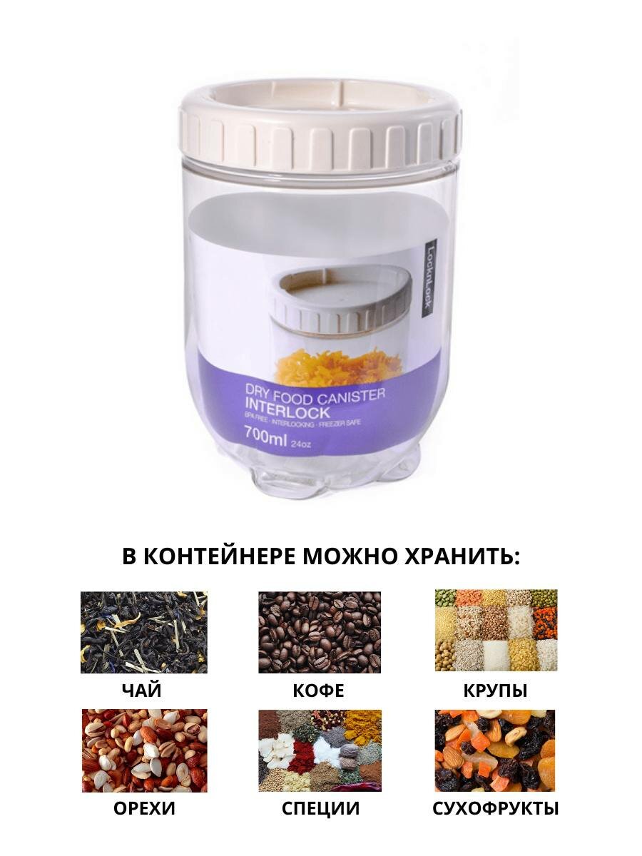 СохранитьБанка для хранения сыпучих продуктов LocknLock "Interlock", белый, 700 мл. интересное: