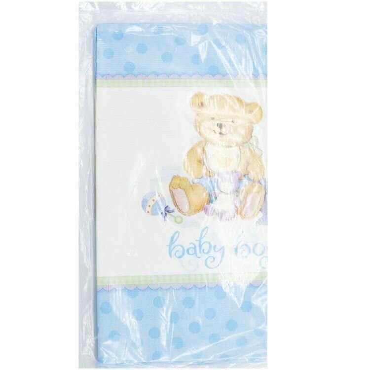 Скатерть праздничная одноразовая бумажная Amscan Медвежонок, Мальчик, голубой, 140х260 см
