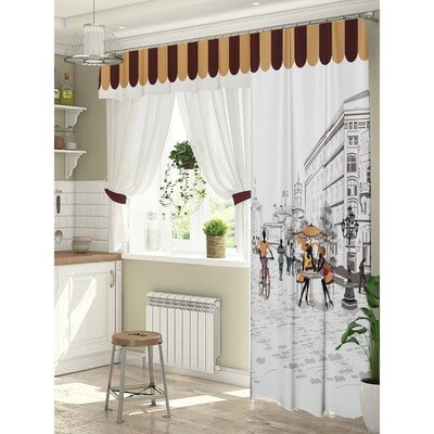 Комплект штор ТамиТекс для окон с балконной дверью, "Любимый город", штора 147*267 см, тюль 294*160 см