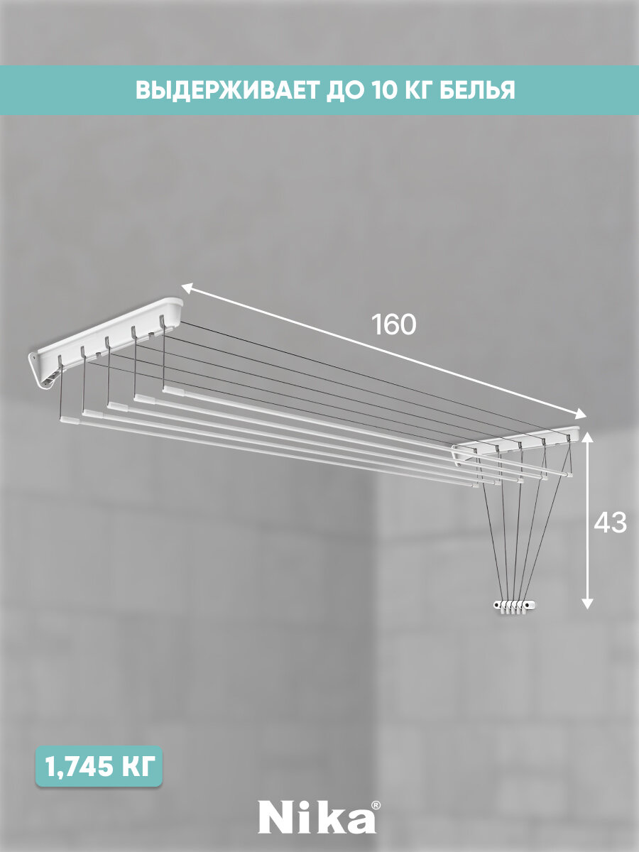 Сушилка для белья настенно-потолочная Ника 1600х430х185 мм белая