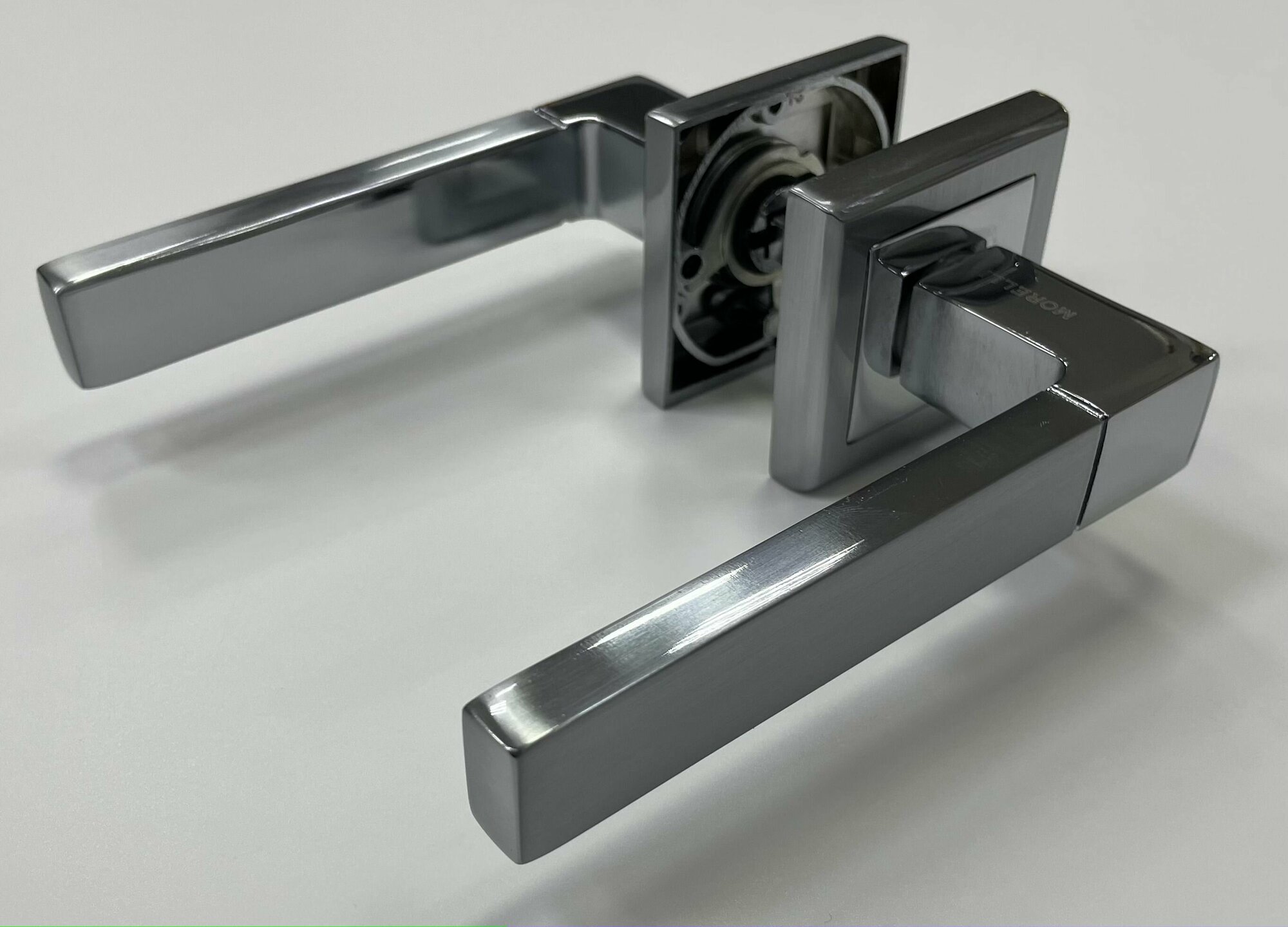 Ручка дверная на квадратном основании MORELLI MH-28 SC/CP-S матовый хром/полированный хром