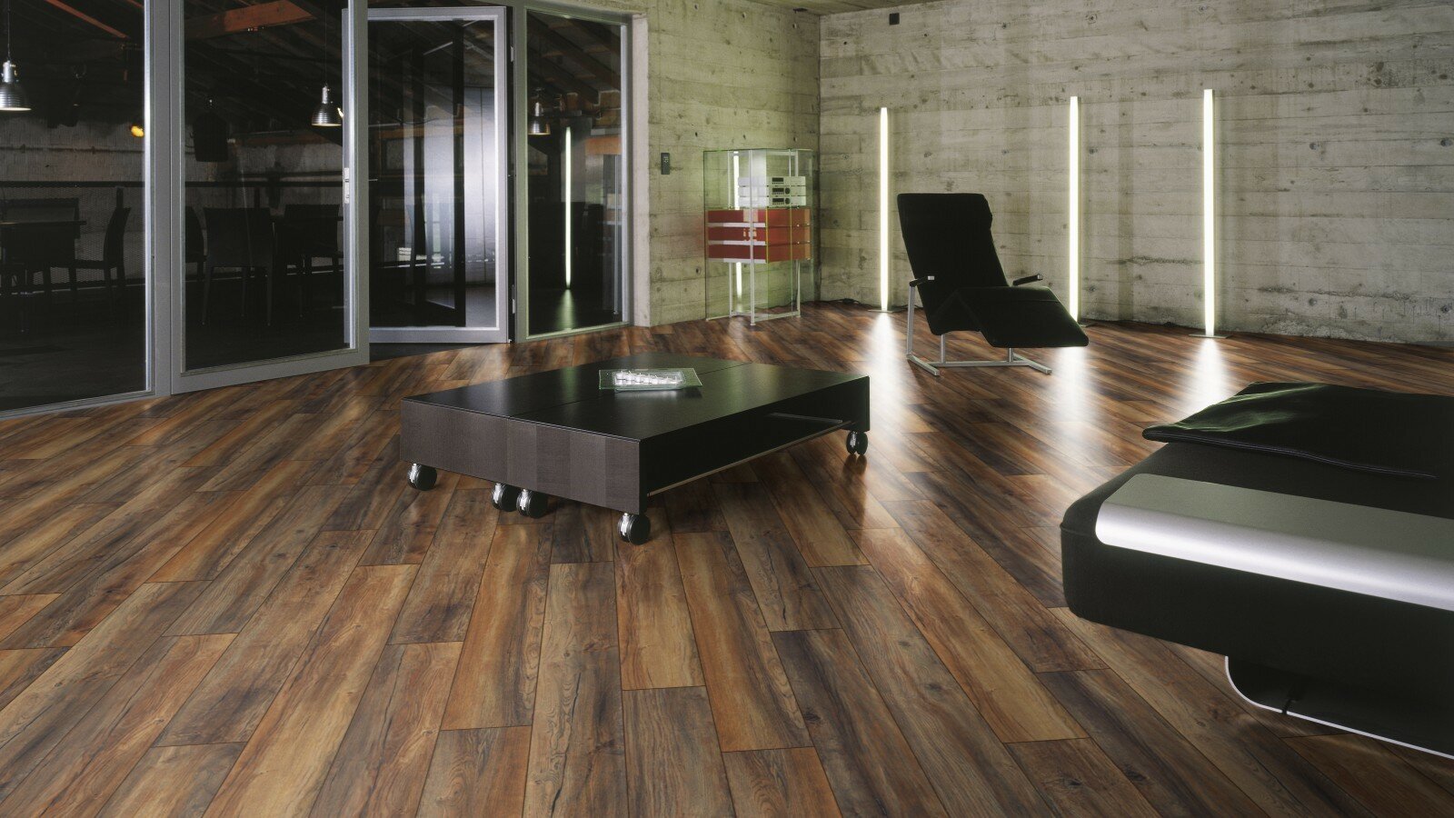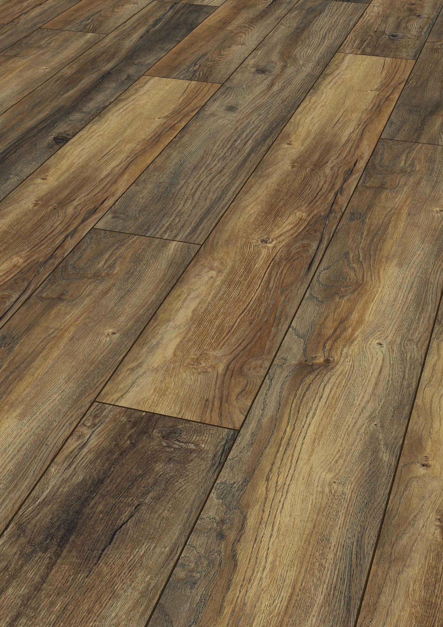 Выбрал вариант Kronotex Aqua Robusto. Интересный чёткий рисунок, что важно. Почитал отзывы, отмечают, что не выцветает со временем. Могу отметить, что он хорошо укладывается. На вид выглядит прочно. Но через месяц пользования могу сказать, что не продавливается под ногами и шкафами. Ногам комфортно ходить по ламинату |