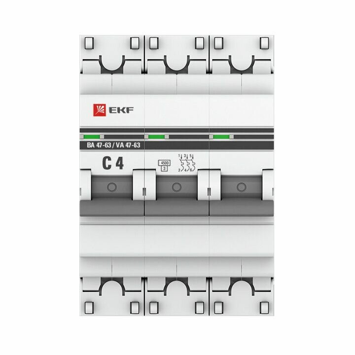 Купить Модульный автоматический выключатель ВА 47-63 PROxima 3 полюса, 4А, х-ка C. mcb4763-3-04C-pro EKF