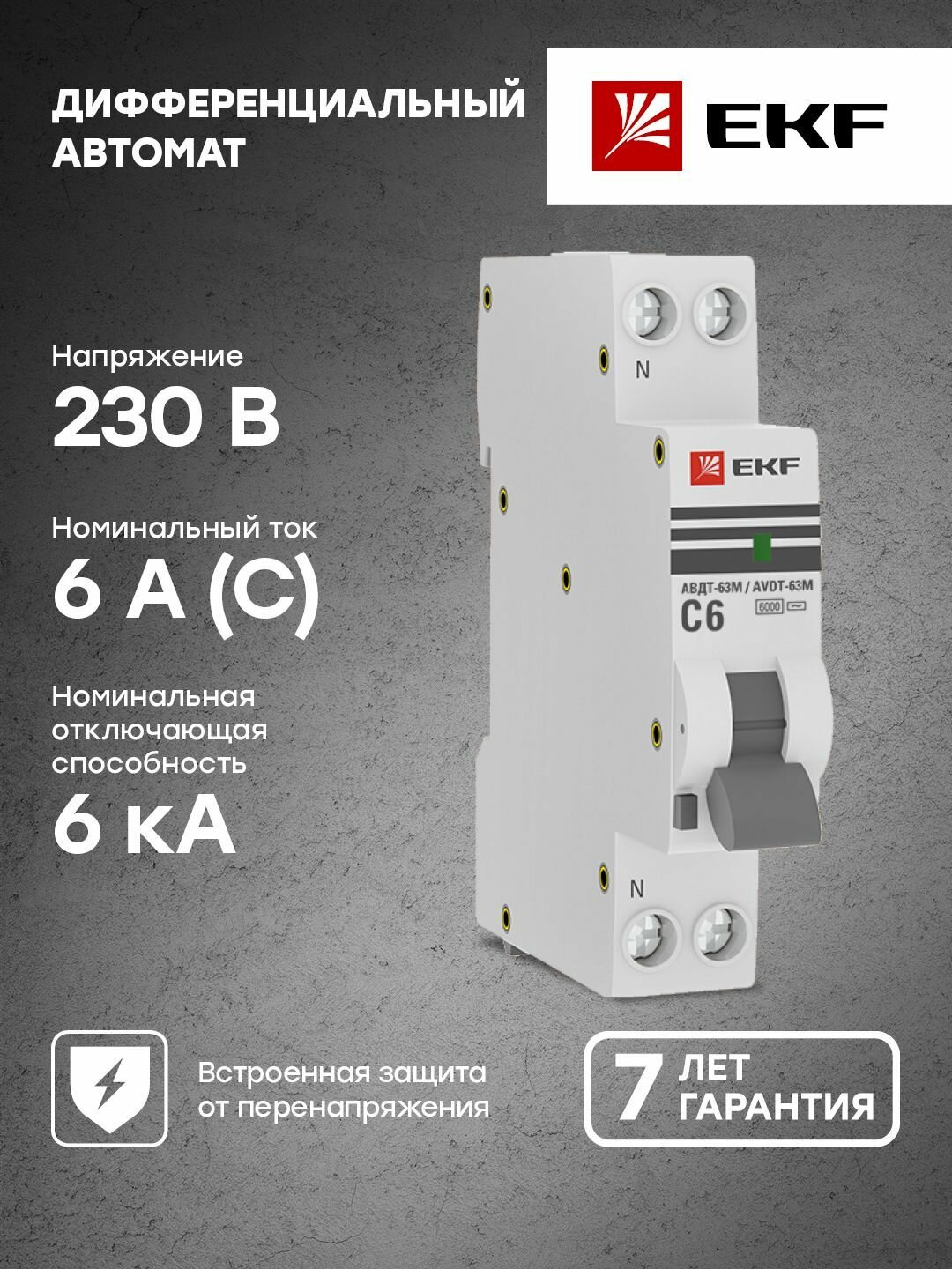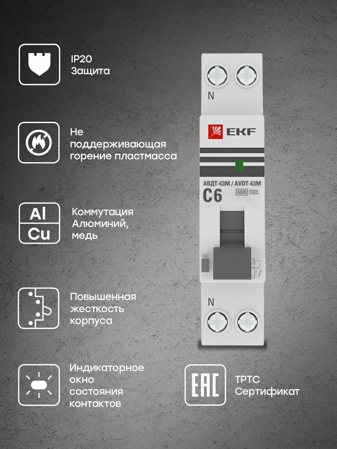 Дифференциальный автомат EKF АВДТ-63М 2П 30 мА C 6 кА AC электронный 16 А