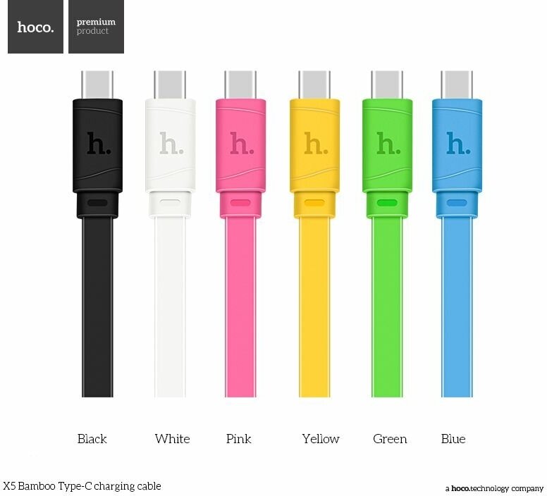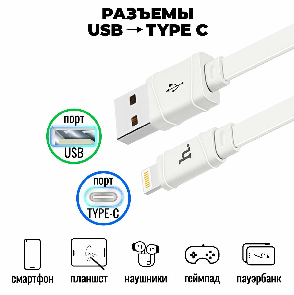 Кабель USB - Type-C HOCO X5 Bamboo, 1.0м, плоский, 2.1A, силикон, цвет белый