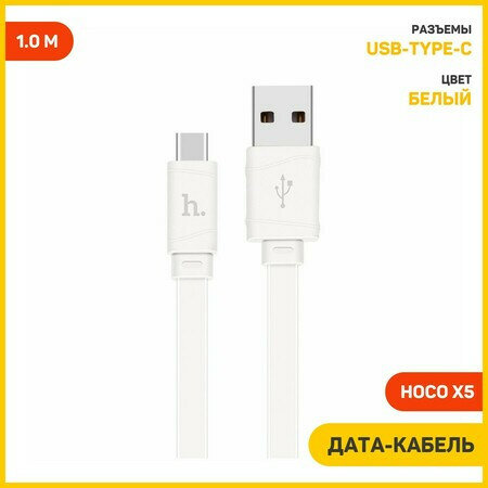Купить Кабель Hoco X5, USB - Type-C, 2.4 А, 1 м, плоский, белый 7550666