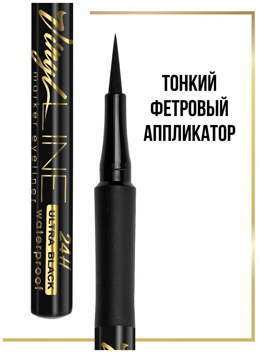 LUXVISAGE / ЛюксВизаж Подводка-фломастер для глаз VINYL LINE ULTRA BLACK 24H WATERPROOF водостойкая, тон черный, 1мл / декоративная косметика