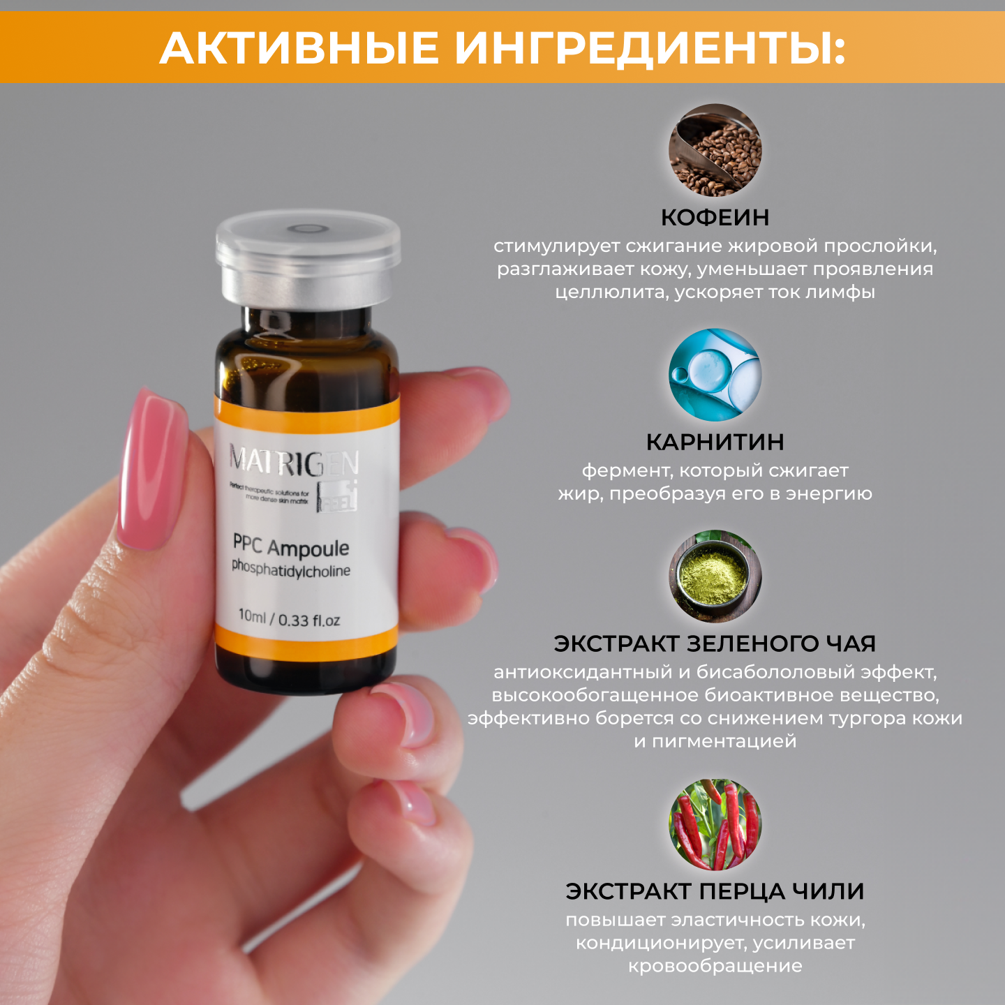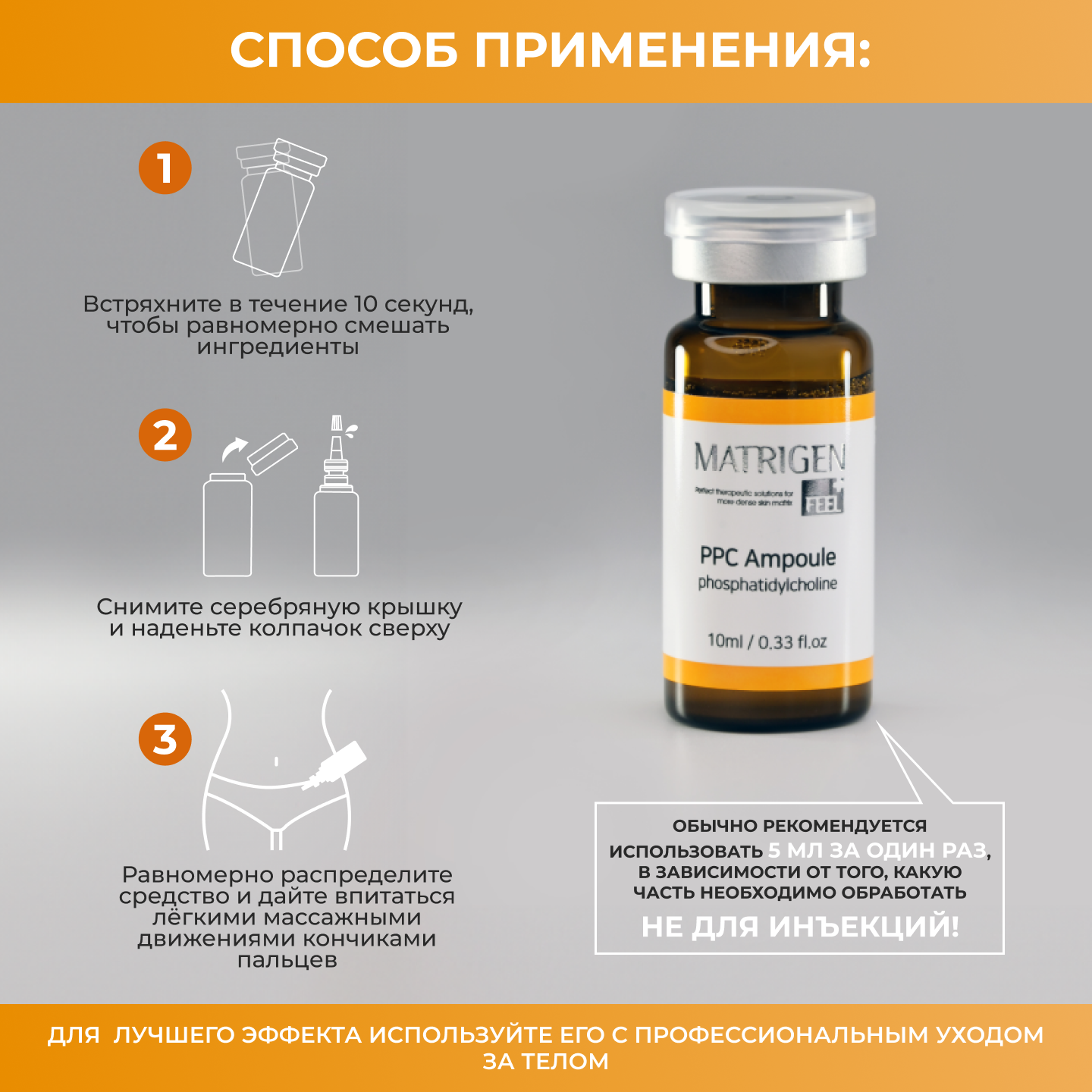 Matrigen PPC 1 Ampoule Жиросжигающая / антицеллюлитная лифтинг сыворотка для тела / липолитик для похудения / под / для мезороллера и дермапен / 1 ампула х 10 мл