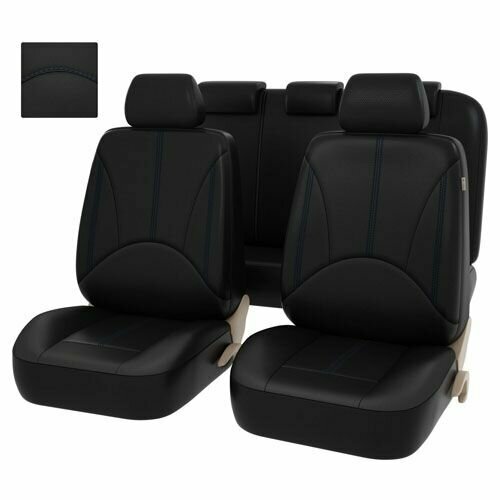 Авточехлы универсальные из экокожи черные с синим PSV Imperial Next, для автомобильных сидений комплект на весь салон, 11 предметов