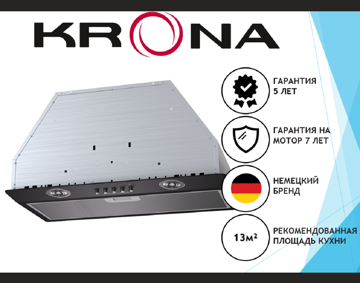 Кухонная вытяжка встраиваемая Krona RUNA 600 inox PB