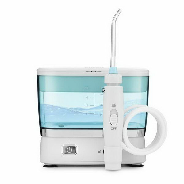 Напор не очень сильный, но для меня это плюс, потому что очень чувствительные десна, при этом очищает хорошо, ощущение свежести после процедуры. Понравились присоски, благодаря которым он прочно держится на поверхности.Резервуар для воды не очень большой, но отлично хватает. |