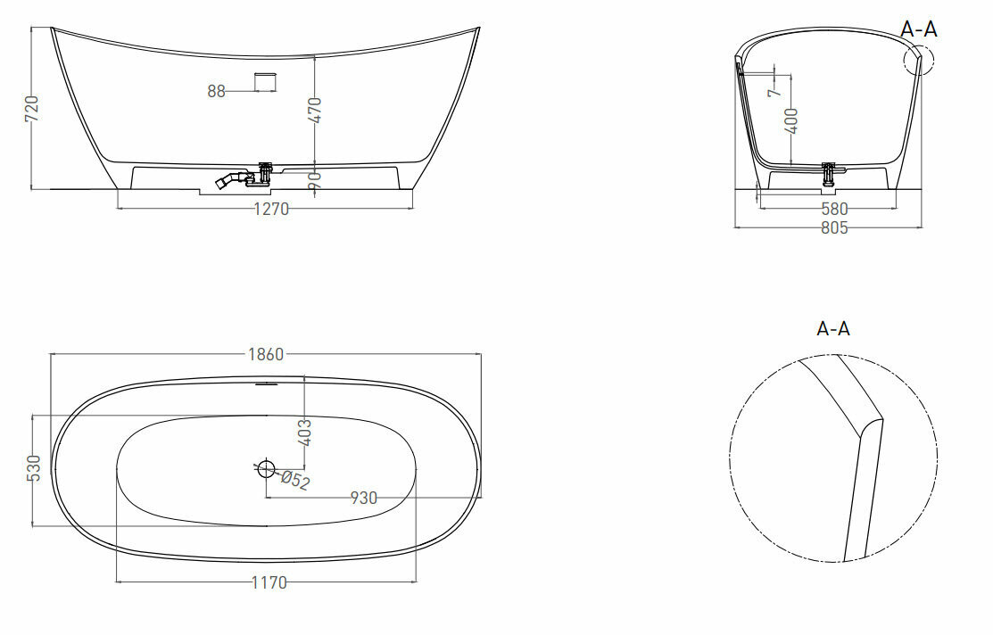 Ванна из литьевого мрамора Salini Noemi Basso 185х78